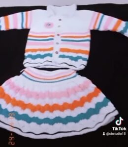 This cozy cream knitted baby dress is designed to keep your little one warm while looking adorable. Crafted from ultra-soft yarn, it features delicate pastel stripes and button details on the front for easy dressing. Perfect for everyday wear or special photoshoots during the chilly season. Pair it with warm tights for a complete winter look.