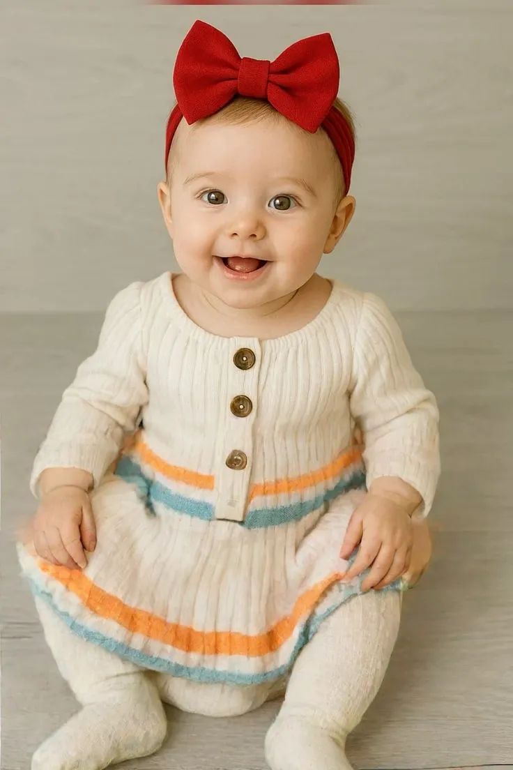 This cozy cream knitted baby dress is designed to keep your little one warm while looking adorable. Crafted from ultra-soft yarn, it features delicate pastel stripes and button details on the front for easy dressing. Perfect for everyday wear or special photoshoots during the chilly season. Pair it with warm tights for a complete winter look.