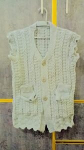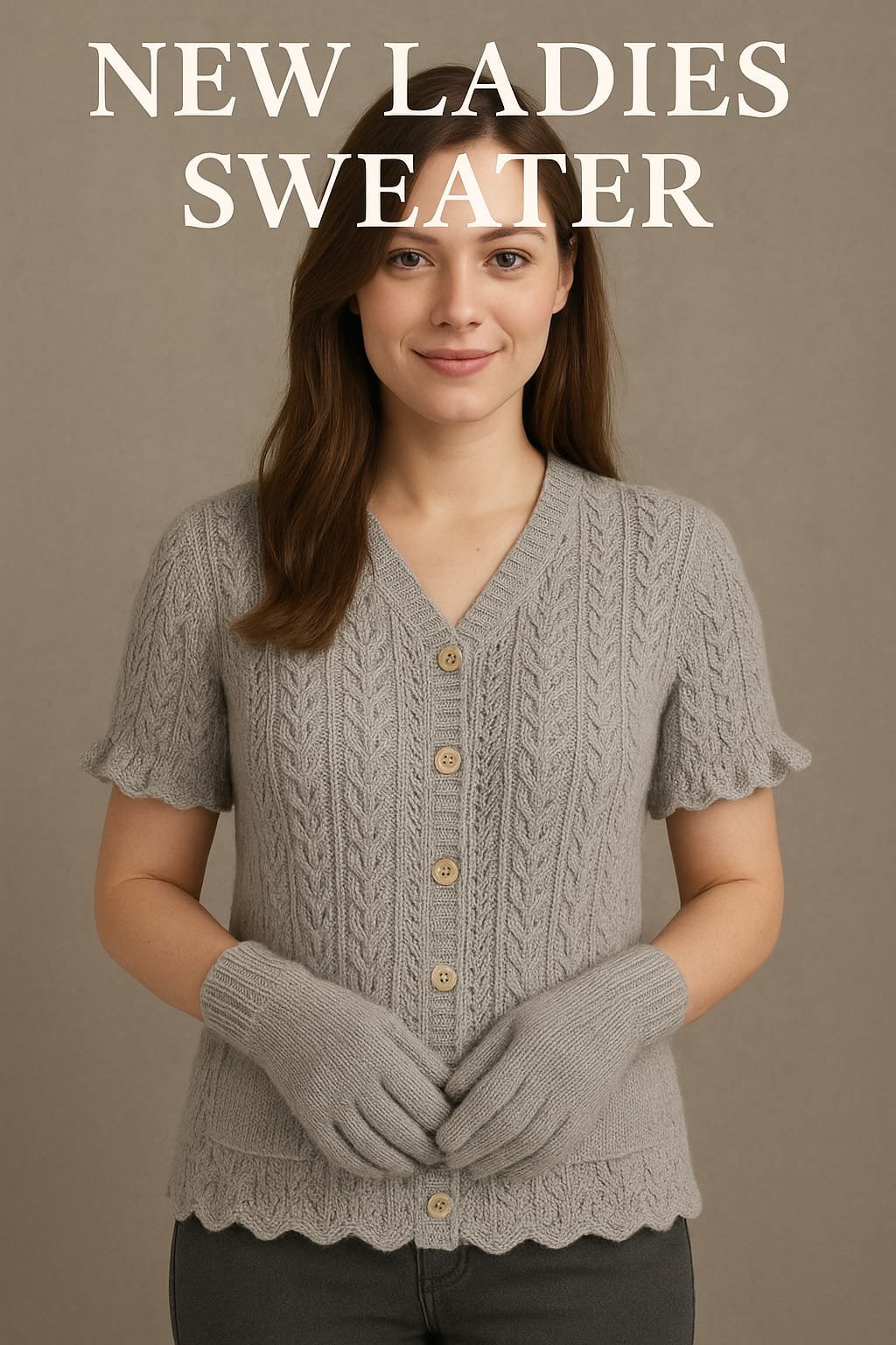 This handmade knitted women’s cardigan is crafted from soft, warm wool, providing comfort and style for mild winter days.