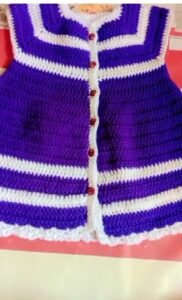 This fashionable kids’ outfit features a soft knitted purple vest paired with trendy wide-leg jeans. The design perfectly balances comfort and modern flair, making it ideal for casual outings, playdates, or photoshoots. The cozy knit texture keeps it snug, while the relaxed-fit jeans add a cool, effortless vibe. A perfect pick for little trendsetters who love to dress with style!