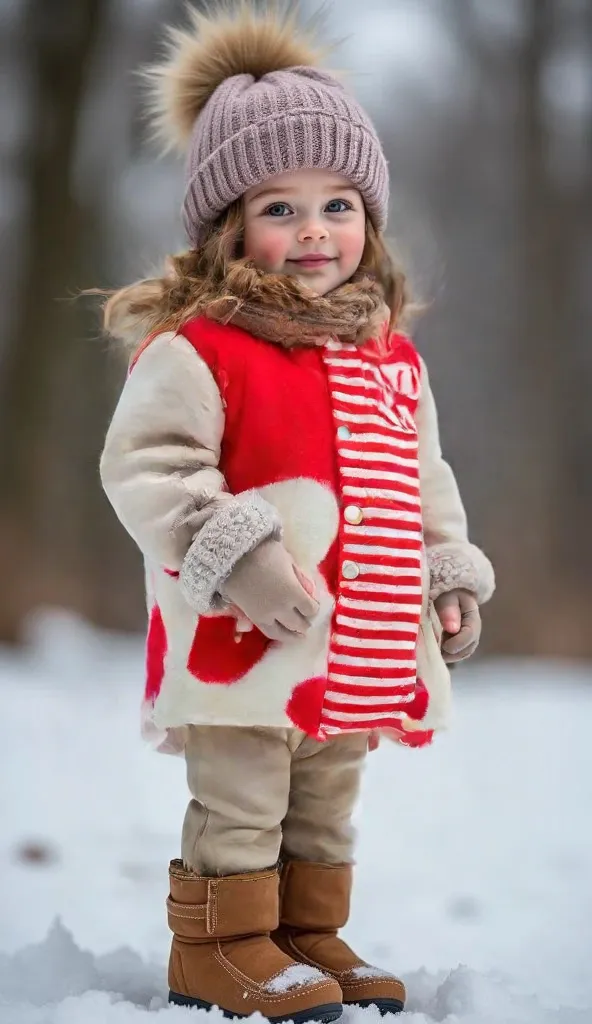 NRSelection brings this adorable red and beige jacket designed with a soft inner lining and button-front closure. Ideal for outdoor play or travel, it ensures complete warmth while maintaining lightweight comfort. The cute fur cap adds a playful touch, making it a must-have in every girl’s winter collection.